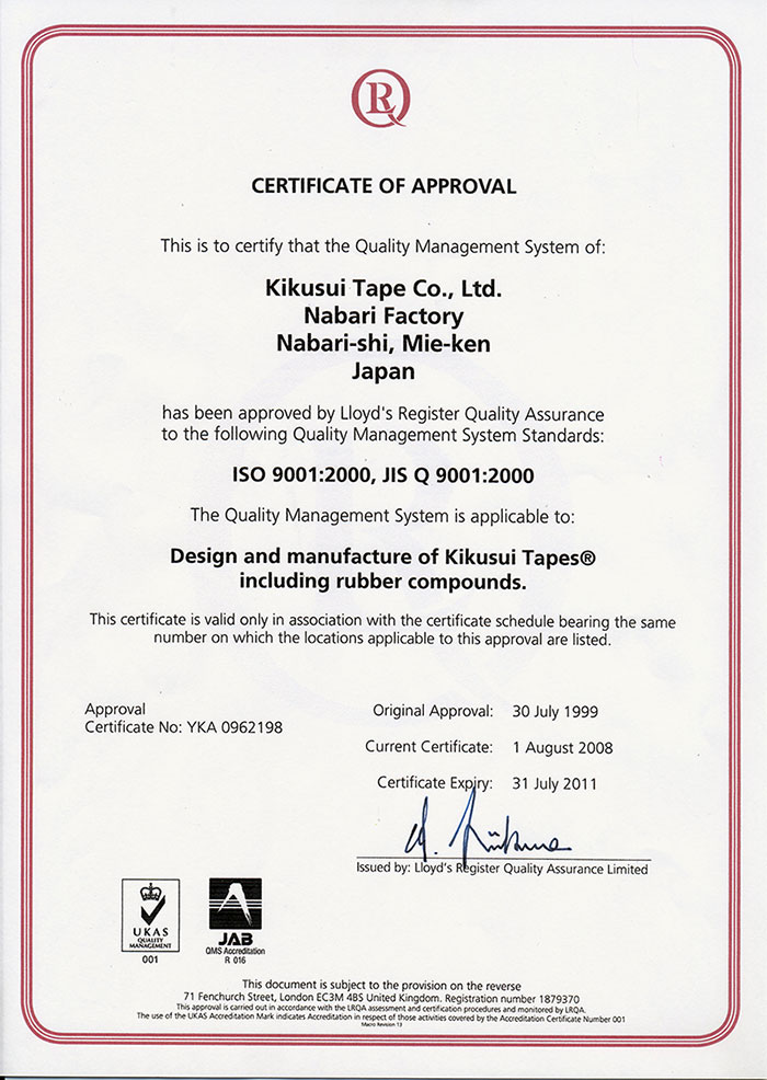 日本菊水膠帶株式會社KIKUSUI Tape Co.,Ltd. 成立60多年以來始終堅持為客戶提供品質(zhì)穩(wěn)定的膠帶產(chǎn)品。